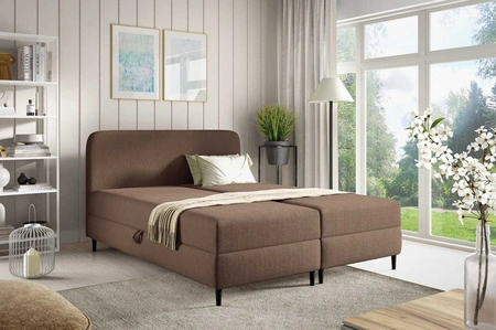 Łóżko kontynentalne Aberg 180x200 brązowe nowoczesny minimalizm stylowe łózko do sypialni gładki zagłówek o zaokrąglonych rogach