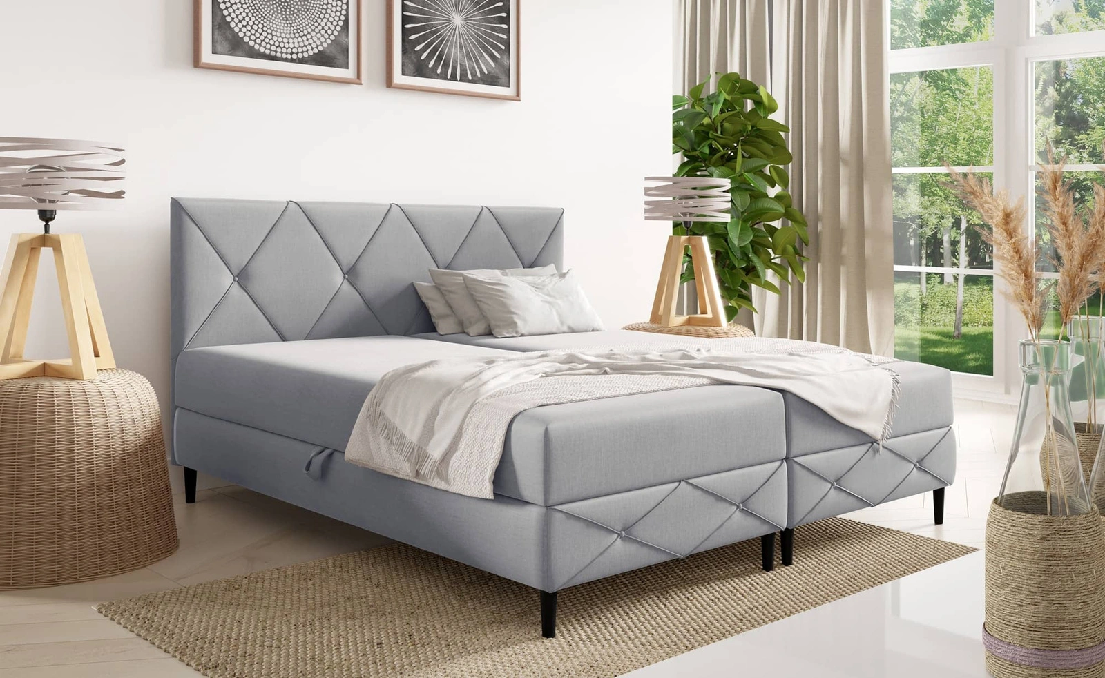 Łóżko kontynentalne z pojemnikiem na pościel Noren Łóżko tapicerowane do sypialni