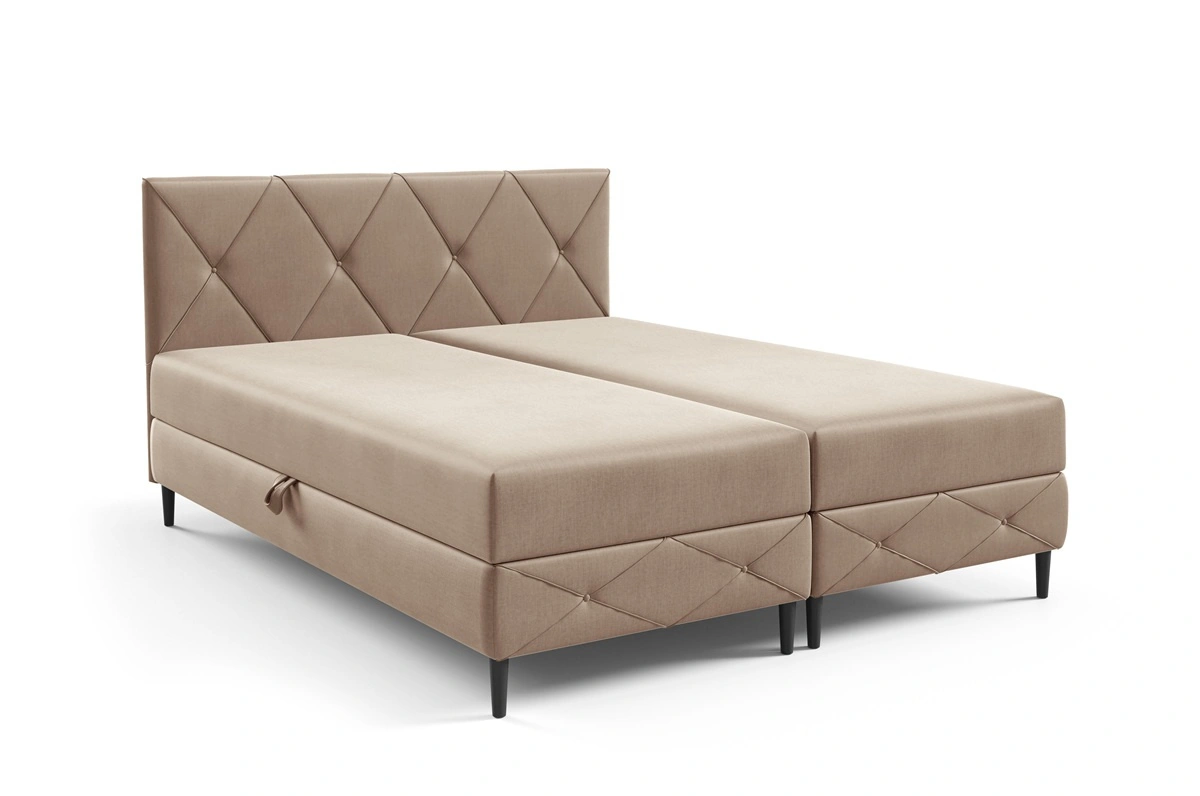 Łóżko kontynentalne Noren 140x200 beżowe nowoczesna forma łóżka z klasycznym pikowaniem na wezgłowiu duże pojemniki na pościel