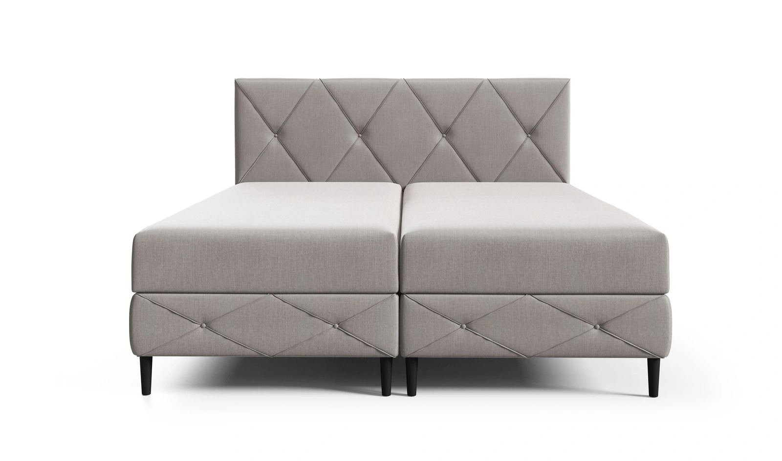 • Łóżko kontynentalne Noren ma nowoczesny, elegancki charakter, przez co świetnie wpasuje się do wnętrz w stylu minimalistycznym lub skandynawskim. Geometryczny wzór rombów na wezgłowiu dodaje stylu oraz luksusowego wyglądu.