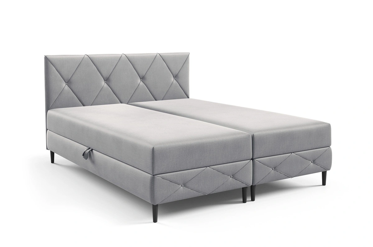 Łóżko kontynentalne Noren 180x200 szary popiel nowoczesna forma łóżka do sypialni pojemniki na pościel klasyczne pikowanie na wezgłowiu