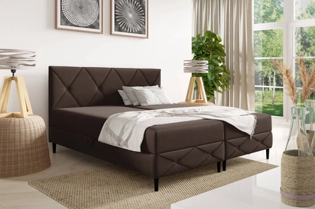 Łóżko kontynentalne Noren 200x200 brązowe nowoczesna forma łóżka klasyczne pikowanie na wezgłowiu idealne do przestronnej sypialni