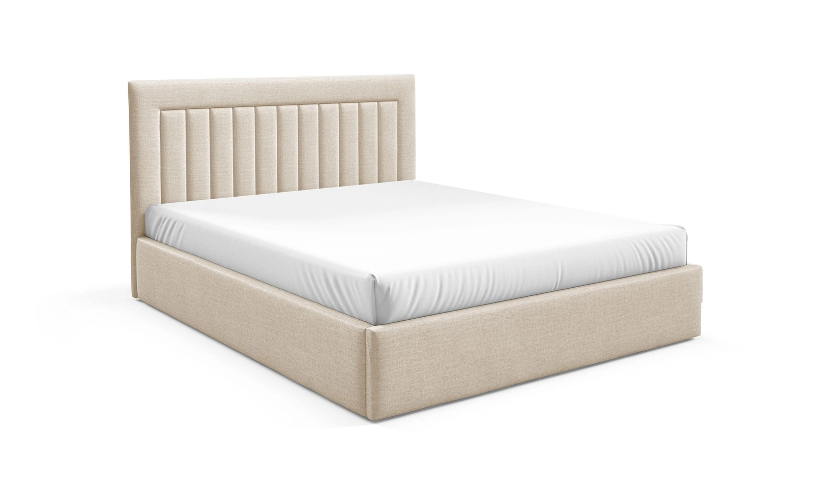 Łóżko tapicerowane Togo 140x200 kremowe eleganckie i funkcjonalne łóżko do sypialni gustowne pionowe przeszycia na wezgłowiu