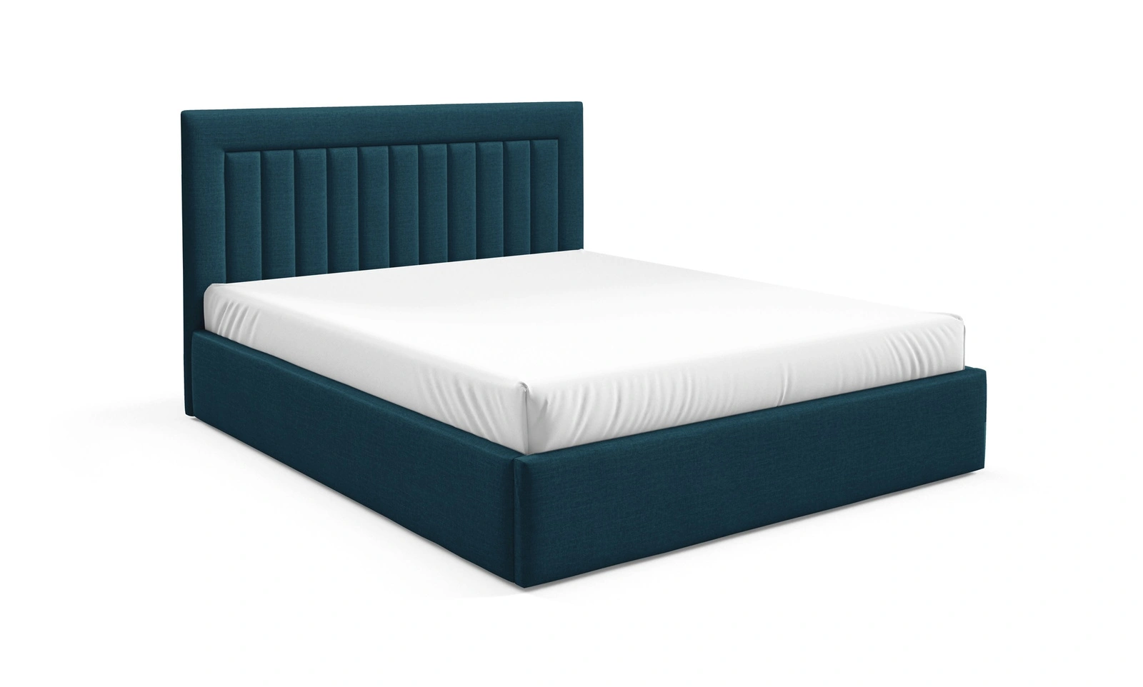 Łóżko tapicerowane Togo 140x200 granatowe eleganckie i funkcjonalne łóżko do sypialni gustowne pionowe przeszycia na wezgłowiu