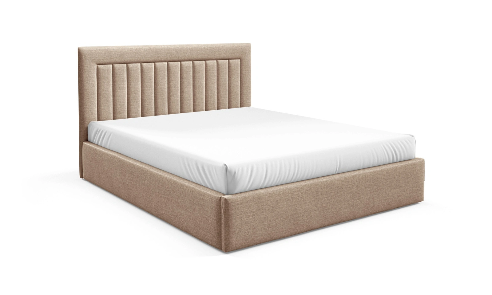 Łóżko tapicerowane Togo 180x200 beżowe eleganckie i funkcjonalne łóżko do sypialni gustowne pionowe przeszycia na wezgłowiu
