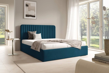 Łóżko tapicerowane Faro 140x200 w kolorze granatowym zostało zaprojektowane z myślą o wygodzie i estetyce.