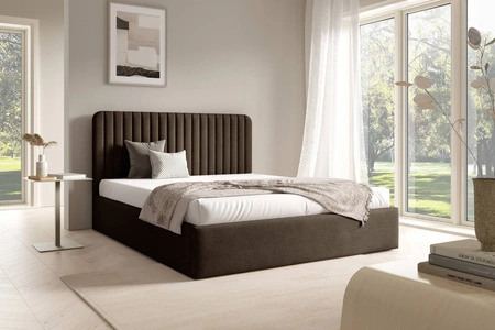 Łóżko tapicerowane Faro 160x200 brązowe wygodne łóżko do sypialni designerskie wezgłowie o subtelnie zaokrąglonym kształcie