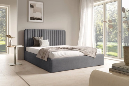 Standardowym wyposażeniem łóżka jest drewniany stelaż z listwami elastycznymi. Zagęszczenie listew gwarantuje odpowiednie podparcie materaca i jego właściwe użytkowanie. Dla większej funkcjonalności łóżko tapicerowane jest wyposażone w duży pojemnik, który umożliwi wygodne przechowywanie pościeli oraz niezbędnych akcesoriów. Dostęp do pojemnika łóżka jest możliwy po podniesieniu materaca. Niezawodne automaty na sprężynach wspomagające podnoszenie ułatwią tę czynność.