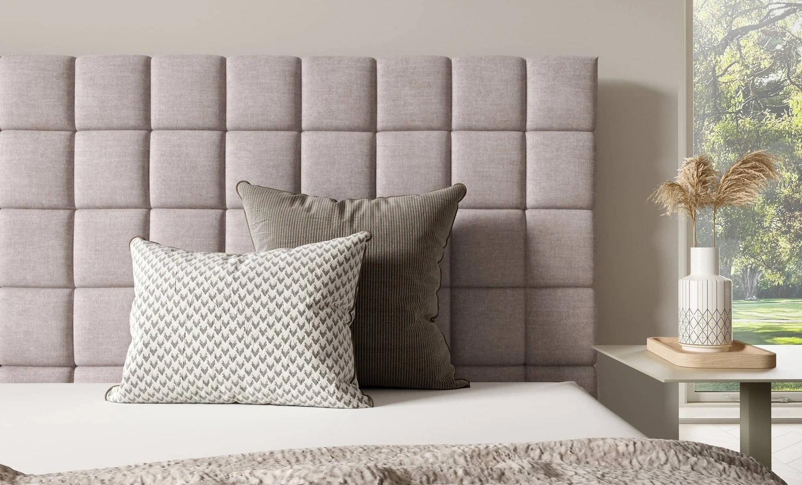 - symetryczne pikowania tworzące wzór kwadratów na wezgłowiu