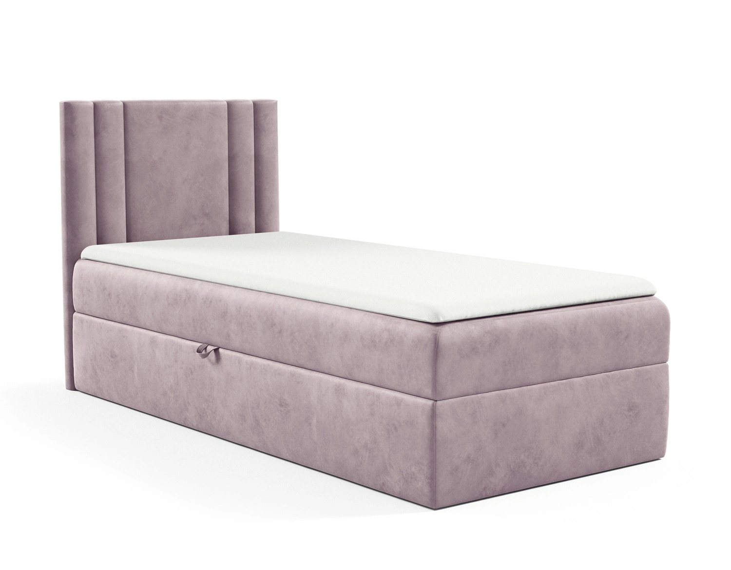 Łóżko kontynentalne Alia 80x200 wrzosowe nowoczesny styl idealne łóżko do pokoju dziecięcego subtelne pionowe przeczycia na wezgłowiu