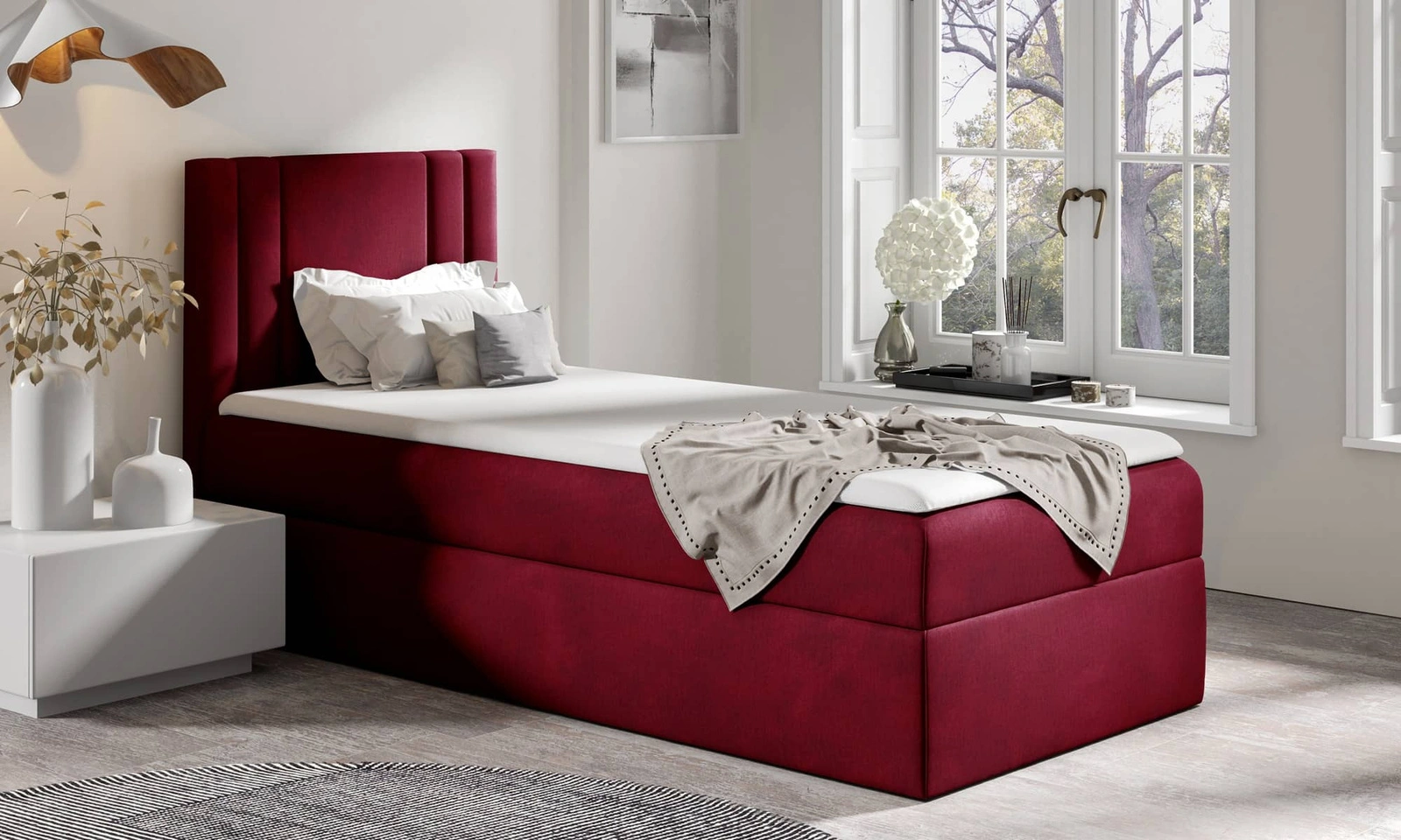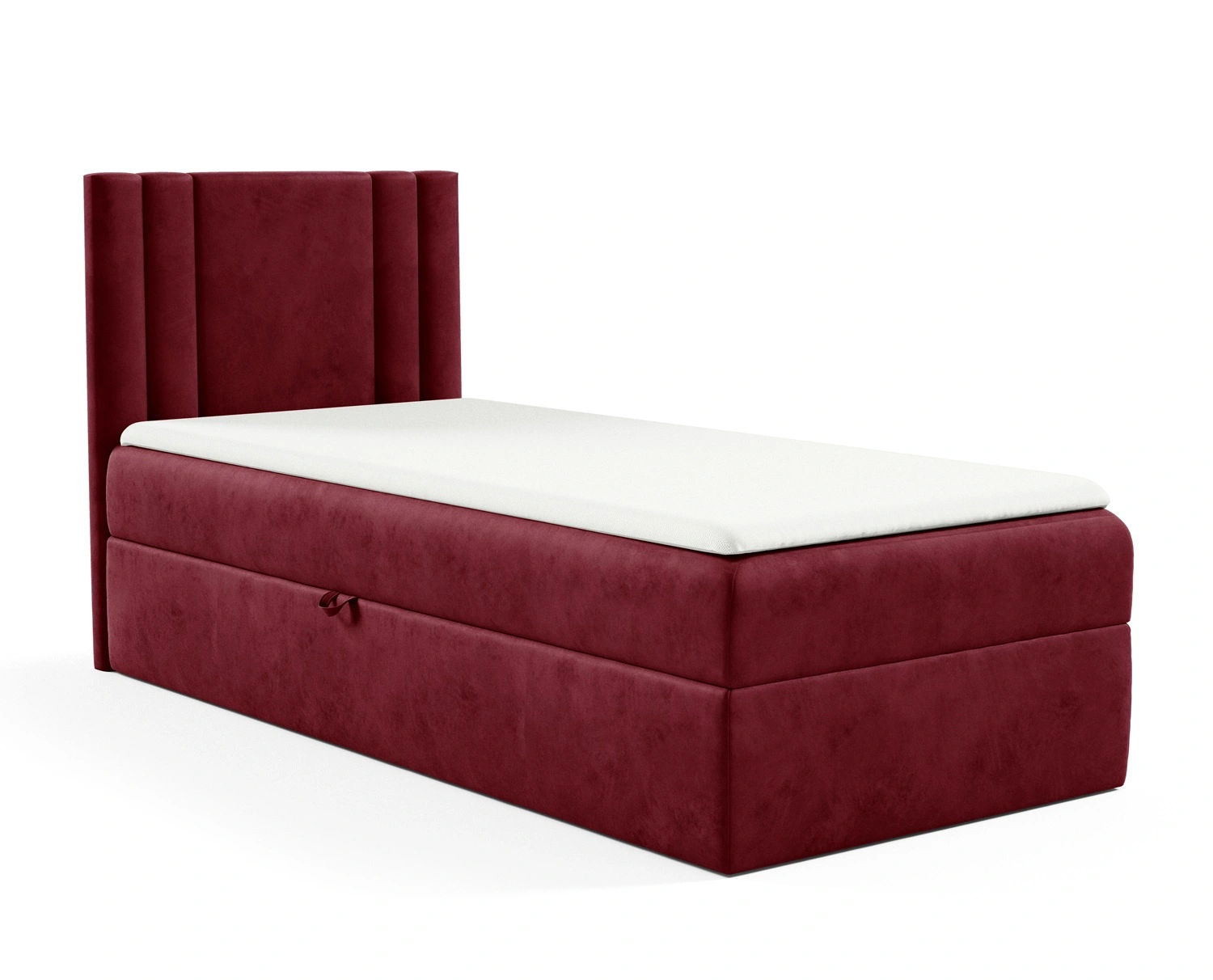 Łóżko kontynentalne Alia 90x200 w kolorze bordowym to idealny wybór do każdej sypialni lub pokoju dziecięcego.
