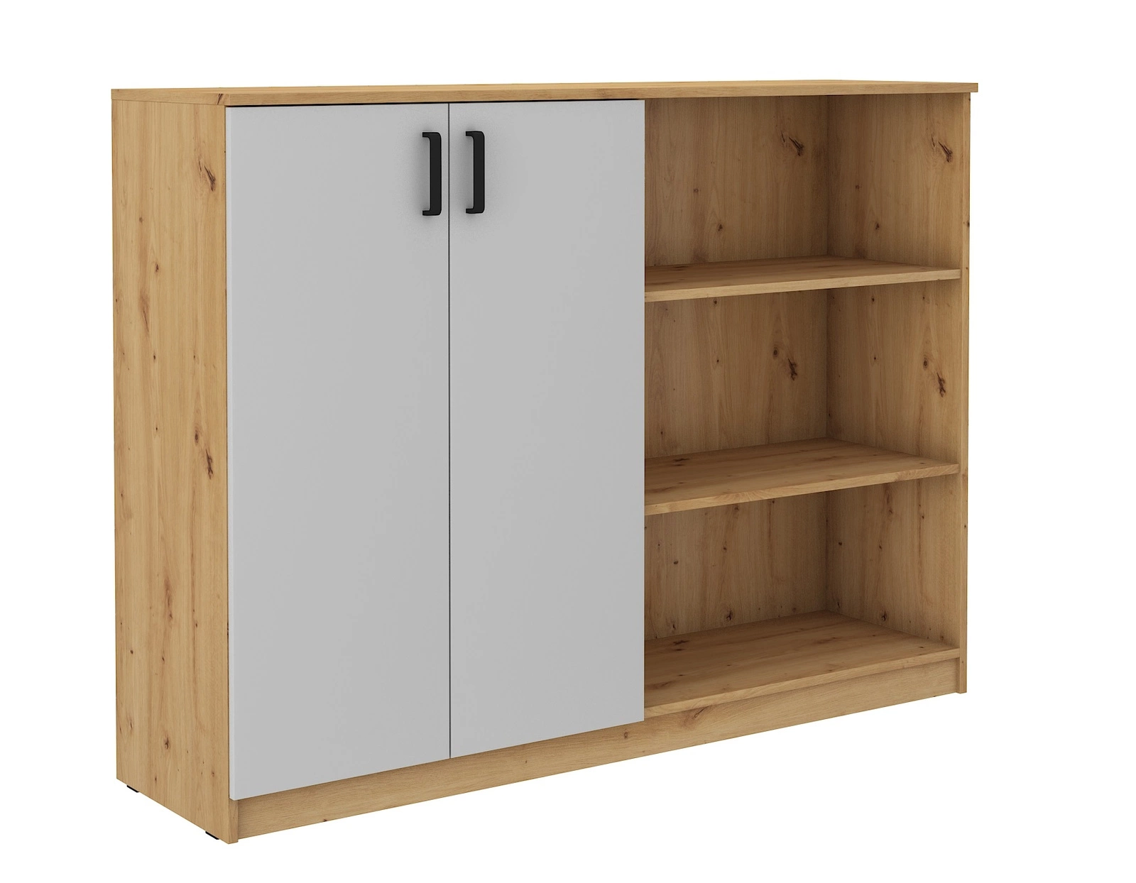 Komoda Makana 158 cm dąb artisan / jasny szary funkcjonalny mebel do biura gabinetu lub pokoju młodzieżowego