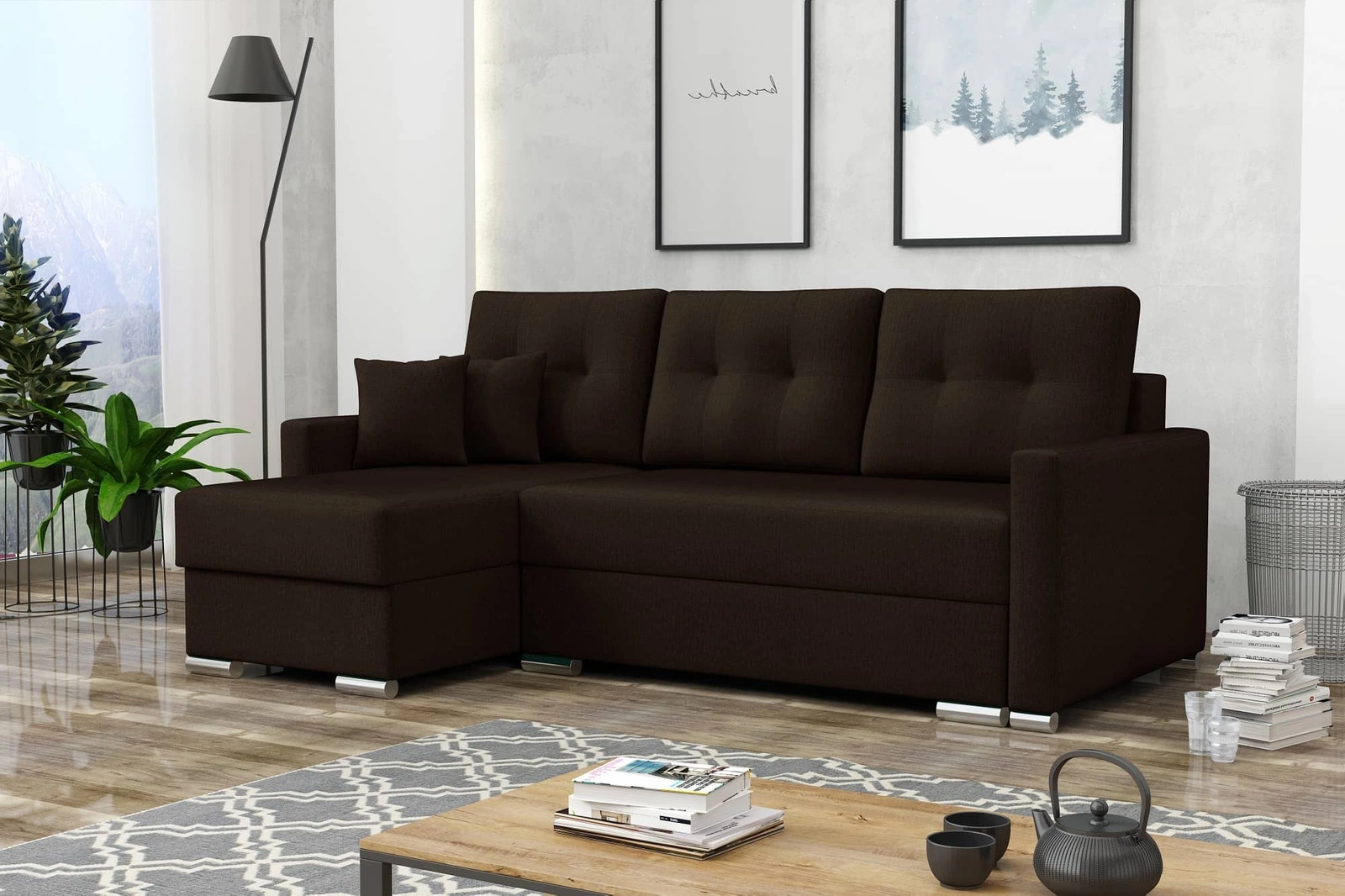 Narożnik z funkcją spania Neron brązowy lewostronny gwarantuje najwyższy komfort i funkcjonalność