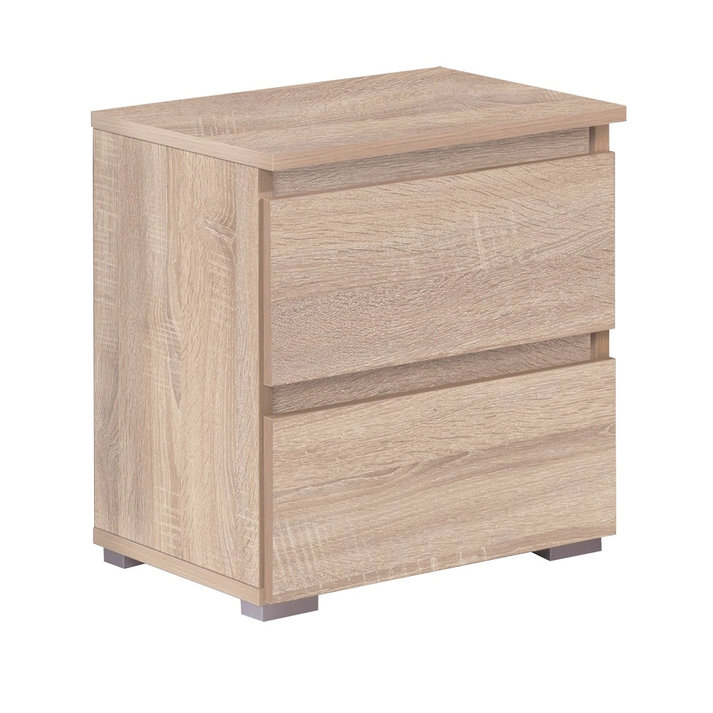 Szafka nocna z szufladami Simple w kolorze dąb sonoma to przepis na nowoczesne oraz funkcjonalne wnętrze w sypialni lub pokoju młodzieżowym.