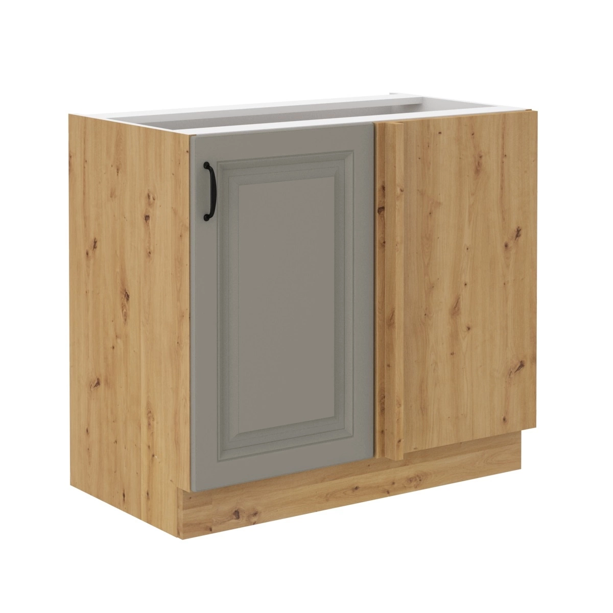 Szafka kuchenna narożna stojąca Delos w kolorze szary beż / dąb artisan należy do kategorii mebli kuchennych modułowych, z których można utworzyć dowolne zestawy.