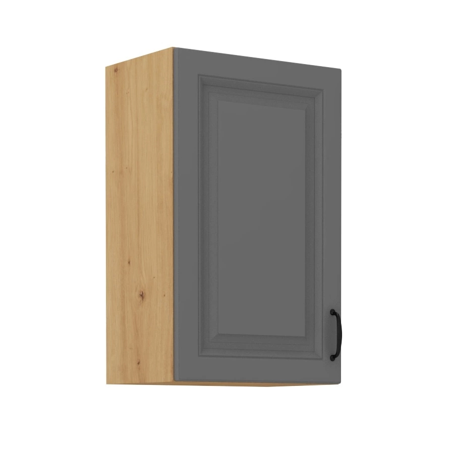 Szafka kuchenna wisząca Kea w kolorze szary popiel / dąb artisan należy do kategorii mebli kuchennych modułowych, z których można utworzyć dowolne zestawy.