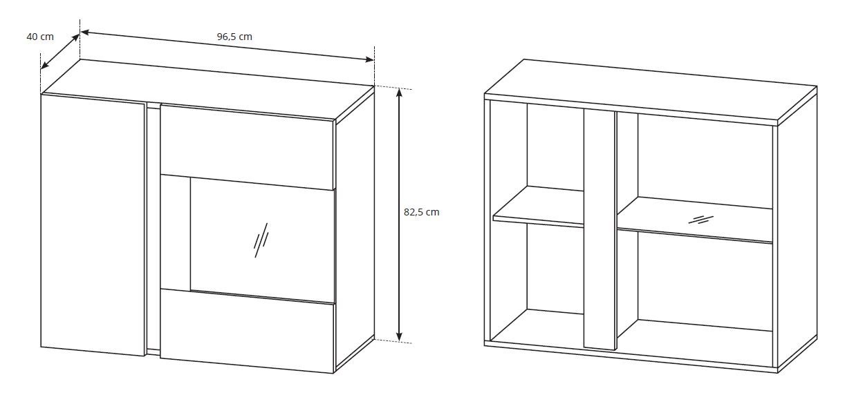 Szerokość 96,5 cm, wysokość 82,5 cm oraz głębokość 40 cm sprawiają, że witryna wpasuje się do każdego typu pomieszczenia! Witryna gwarantuje komfortowe i bezproblemowe korzystanie oraz trwałość całego mebla przez wiele lat użytkowania.