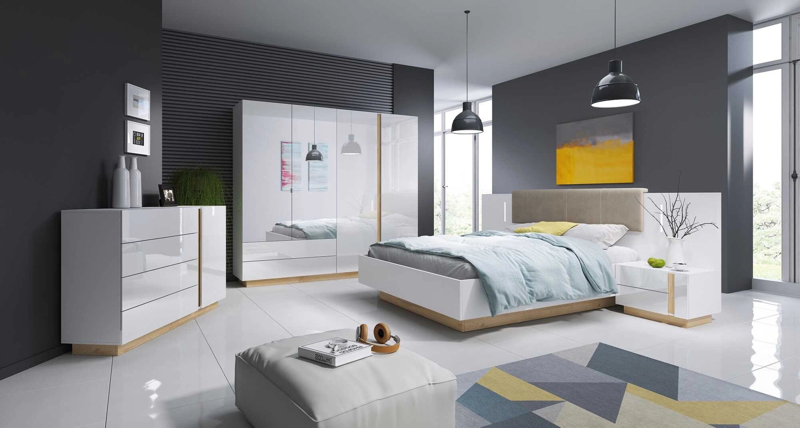 Zestaw mebli do sypialni Adria w kolorze biały połysk / dąb grandson