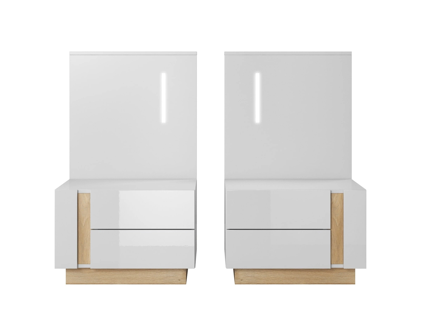 Szafki nocne z szufladami Adria biały połysk / dąb grandson nowoczesny design mebla obrzeża szafek wykończone specjalną okleiną ABS