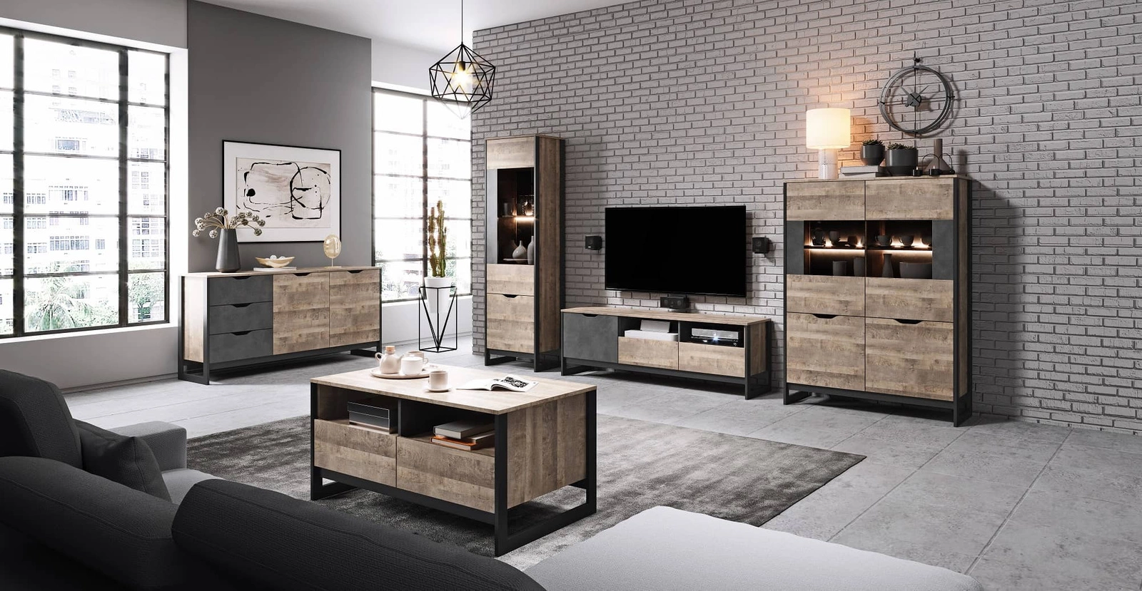 - Stolik kawowy Holte posiada nowoczesny design. Obrzeża stolika wykończone zostały okleiną ABS wysokiej jakości. Blat stolika jest odporny na rozlanie cieczy. Idealny stolik do salonu, pokoju dziennego w stylu loftowym. System pełnego wysuwu szuflad.