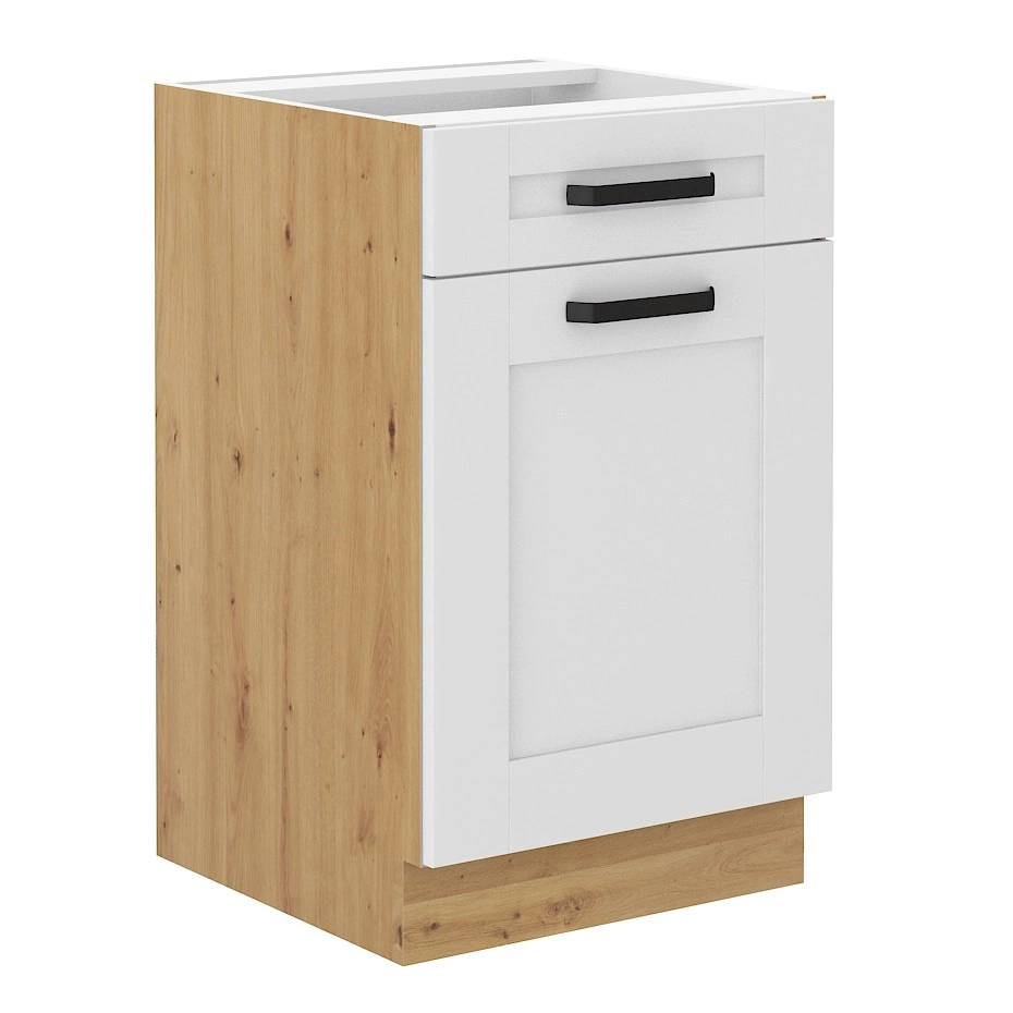 Szafka kuchenna stojąca z szufladą Luis w kolorze biały / dąb artisan należy do kategorii mebli kuchennych modułowych, z których można utworzyć dowolne zestawy.