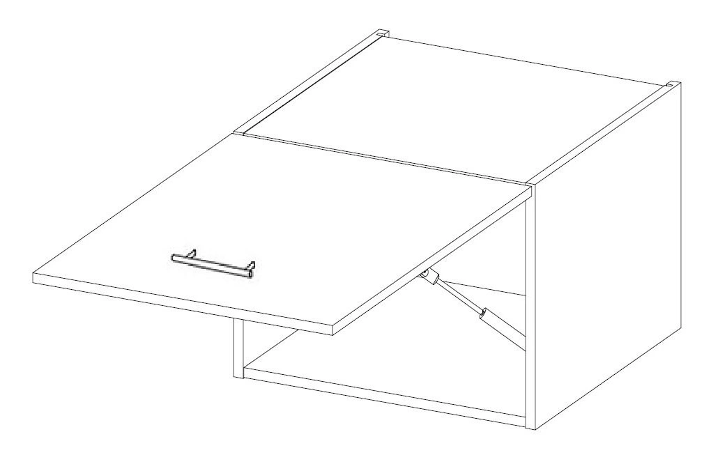 Fronty szafki w kolorze białym zostały wykonane z płyty meblowej oraz oklejone folią w połysku. Obrzeża frontów zabezpiecza okleina ABS, która spełnia dwie funkcje. Jest zabezpieczeniem przeciw wilgoci oraz chroni przed przypadkowym uszkodzeniem. Drzwi są podnoszone na siłownikach gazowych. Standardowym wyposażeniem szafki kuchennej są zawiasy z systemem cichego domykania, który zwiększa komfort i bezpieczeństwo użytkowania mebli.