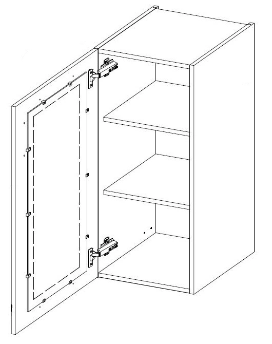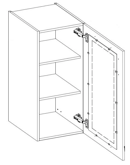Dwie półki można wyciągnąć tworząc miejsce na wysokie przedmioty. Drzwi są uniwersalne i można je zamontować po prawej lub po lewej stronie. Standardowym wyposażeniem szafki kuchennej są zawiasy z systemem cichego domykania. Spowalniacze zwiększają komfort i bezpieczeństwo użytkowania mebli.