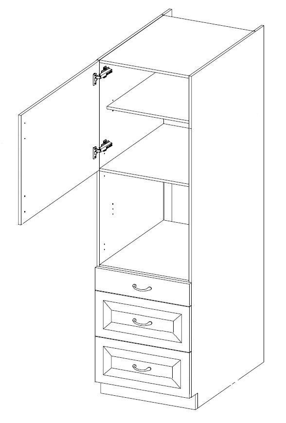 Szafka kuchenna do zabudowy piekarnika jest dostarczana w elementach, które są zapakowane w pięciowarstwowy karton. Razem z elementami szafki kuchennej spakowane są wszystkie potrzebne do zmontowania okucia, tj. wkręty, śruby, kołki, zawiasy, szuflady, uchwyty, zaślepki.