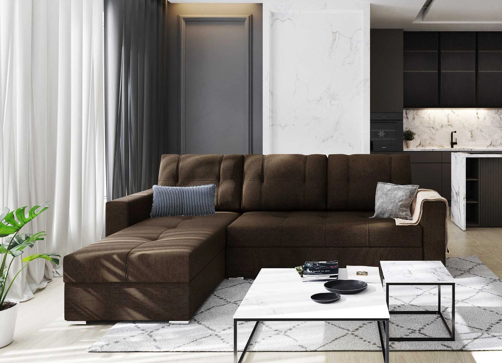Narożnik z funkcją spania Aldo brązowy lewostronny gwarantuje najwyższy komfort i funkcjonalność