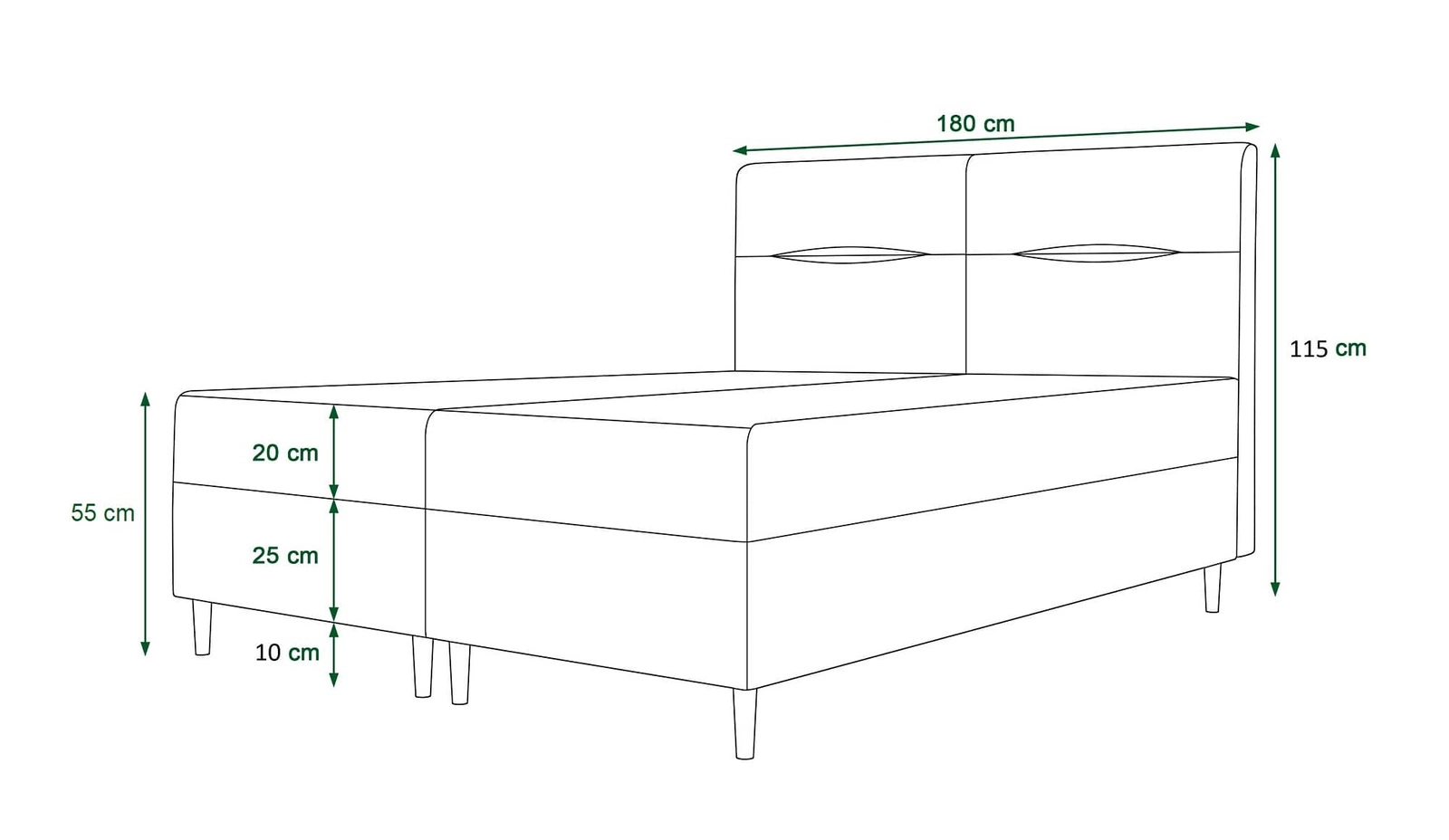 Łóżko wykonane z tkaniny typu velvet Monolith 15 gwarantuje najwyższy komfort i funkcjonalność podczas codziennego wypoczynku w sypialni. Tkanina posiada powłokę hydrofobową, co gwarantuje ograniczone wchłanianie cieczy. Ciekawa struktura tkaniny nadaje wyjątkowego charakteru. Dzięki wszystkim właściwościom użytej tkaniny, łóżko kontynentalne na długo zachowa swój pierwotny wygląd. Konstrukcja łóżka zapewnia dużą stabilność i wygodę użytkowania. Rama łóżka kontynentalnego jest wykonana z drewna oraz płyty meblowej. Lekkie przeszycia na wezgłowiu przyciągają wzrok i nadają łóżku szczególnego charakteru. Łóżko wyposażone zostało w nogi drewniane.