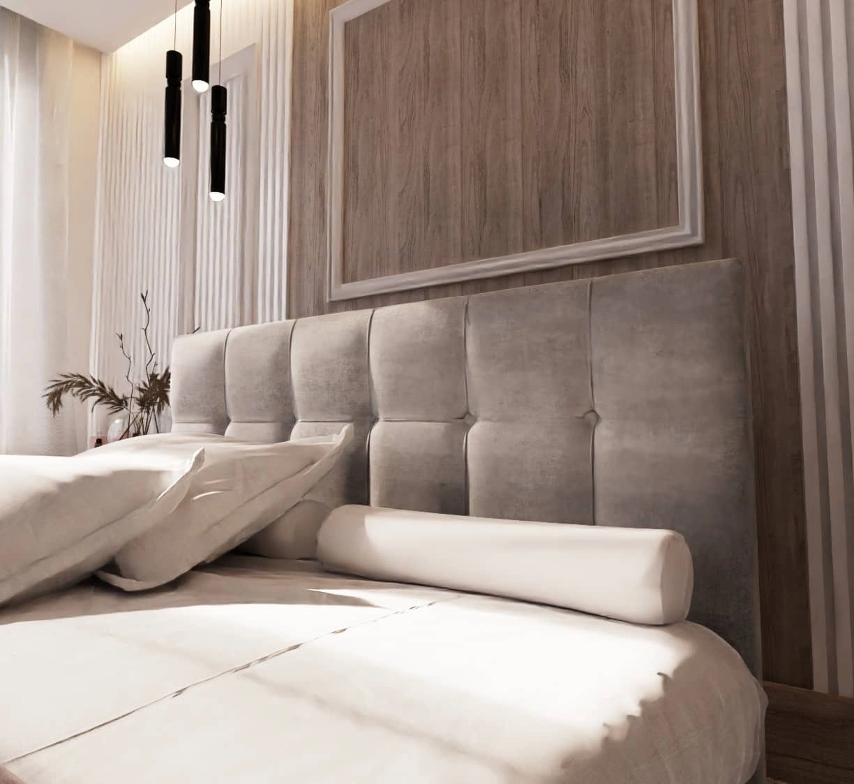 Łóżko kontynentalne Harmony 180x200 w kolorze szarym to znakomity wybór do sypialni urządzonej w stylu nowoczesnym, skandynawskim oraz klasycznym.