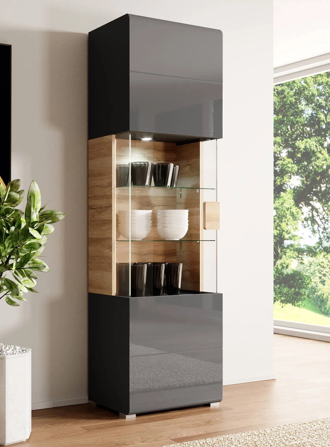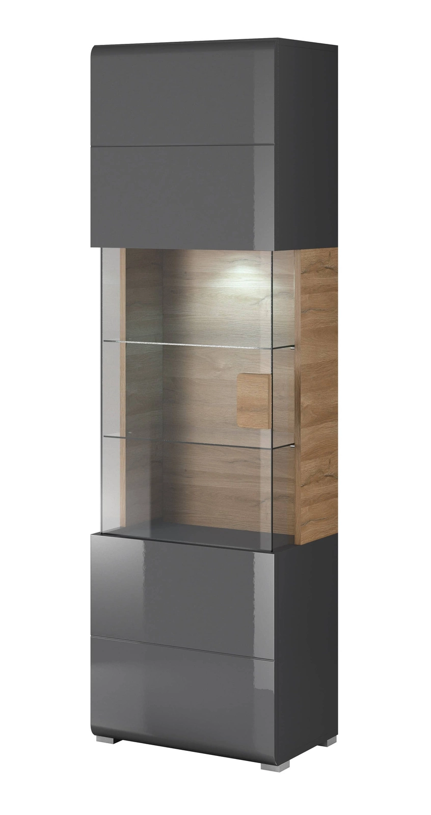 Witryna Toledo 61 cm antracyt / antracyt połysk / dąb grandson wysoka jakość częściowo przeszklone boki witryny