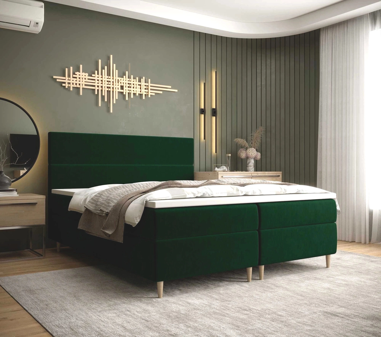 Łóżko kontynentalne Bing 160x200 w kolorze butelkowej zieleni to stylowy mebel, który idealnie wkomponuje się do każdej sypialni.