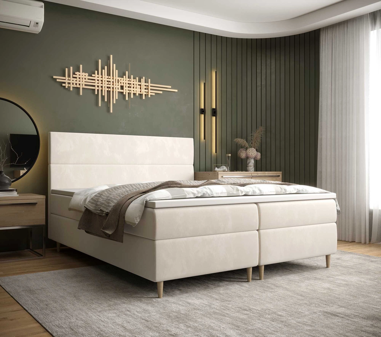 Łóżko kontynentalne Bing 140x200 w kolorze beżowym to stylowy mebel, który idealnie wkomponuje się do każdej sypialni.
