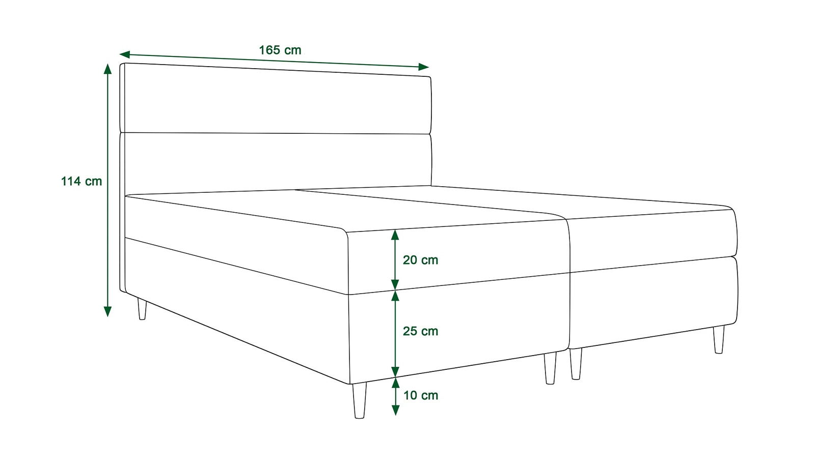 Łóżko kontynentalne Bing 160x200 cm  Itaka 16Wymiary łóżka kontynentalnego: