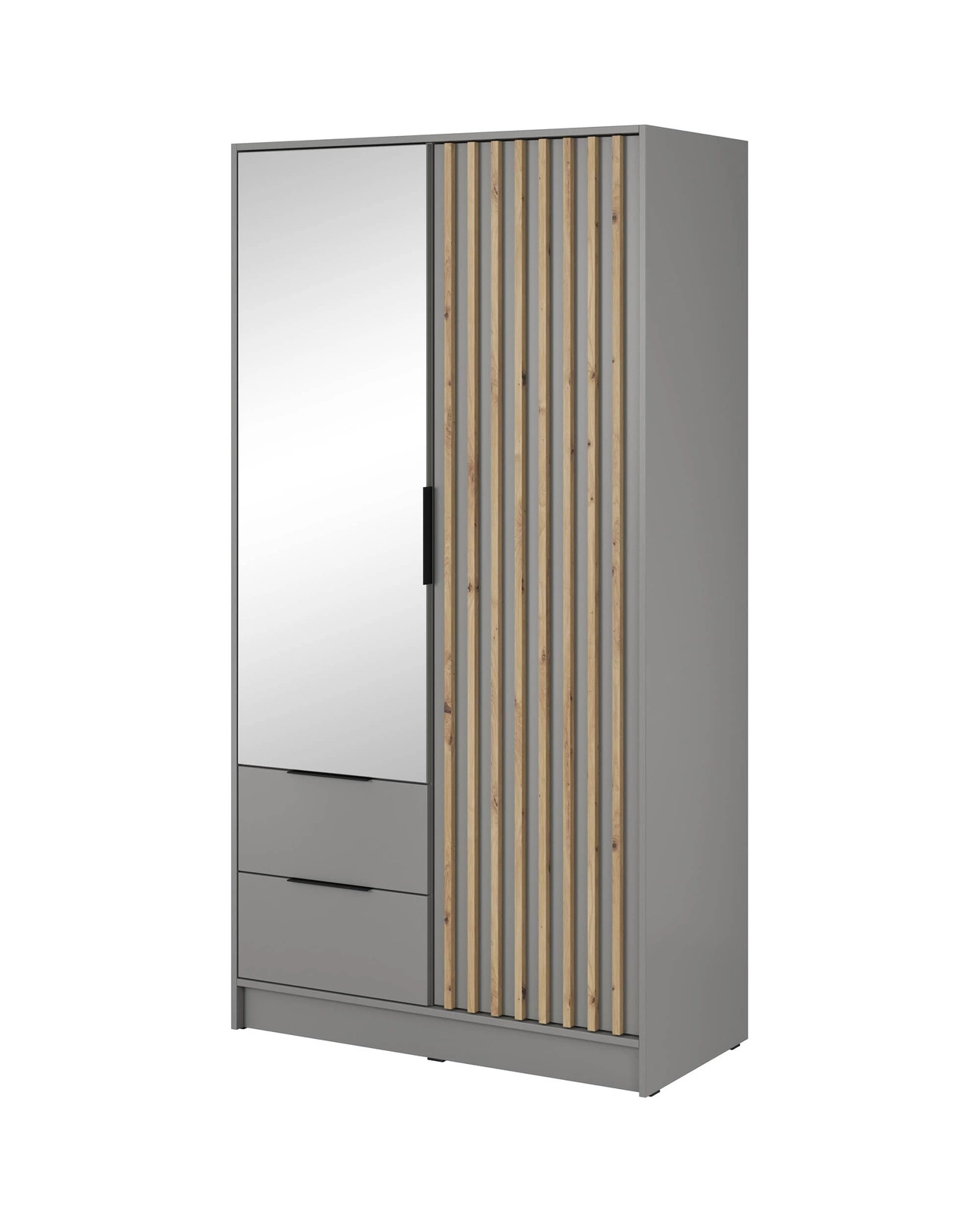 Szafa z lustrem Aspen 105 cm szara / lamele w kolorze dąb artisan nowoczesny design mebla drzwi szafy ozdobione lamelami