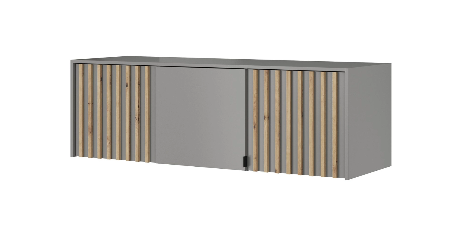 Nadstawka do szafy Aspen 155 cm szara / lamele w kolorze dąb artisan funkcjonalna szafka powiększy miejsce do przechowywania ubrań obuwia i dodatków