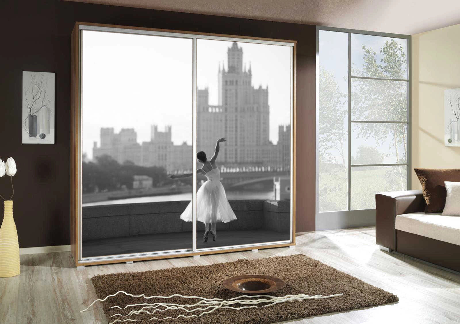 Szafa przesuwna Artistino 205 cm z grafiką baletnica II korpus szafy w kolorze dąb catania wykonany z płyty o grubości 22mm