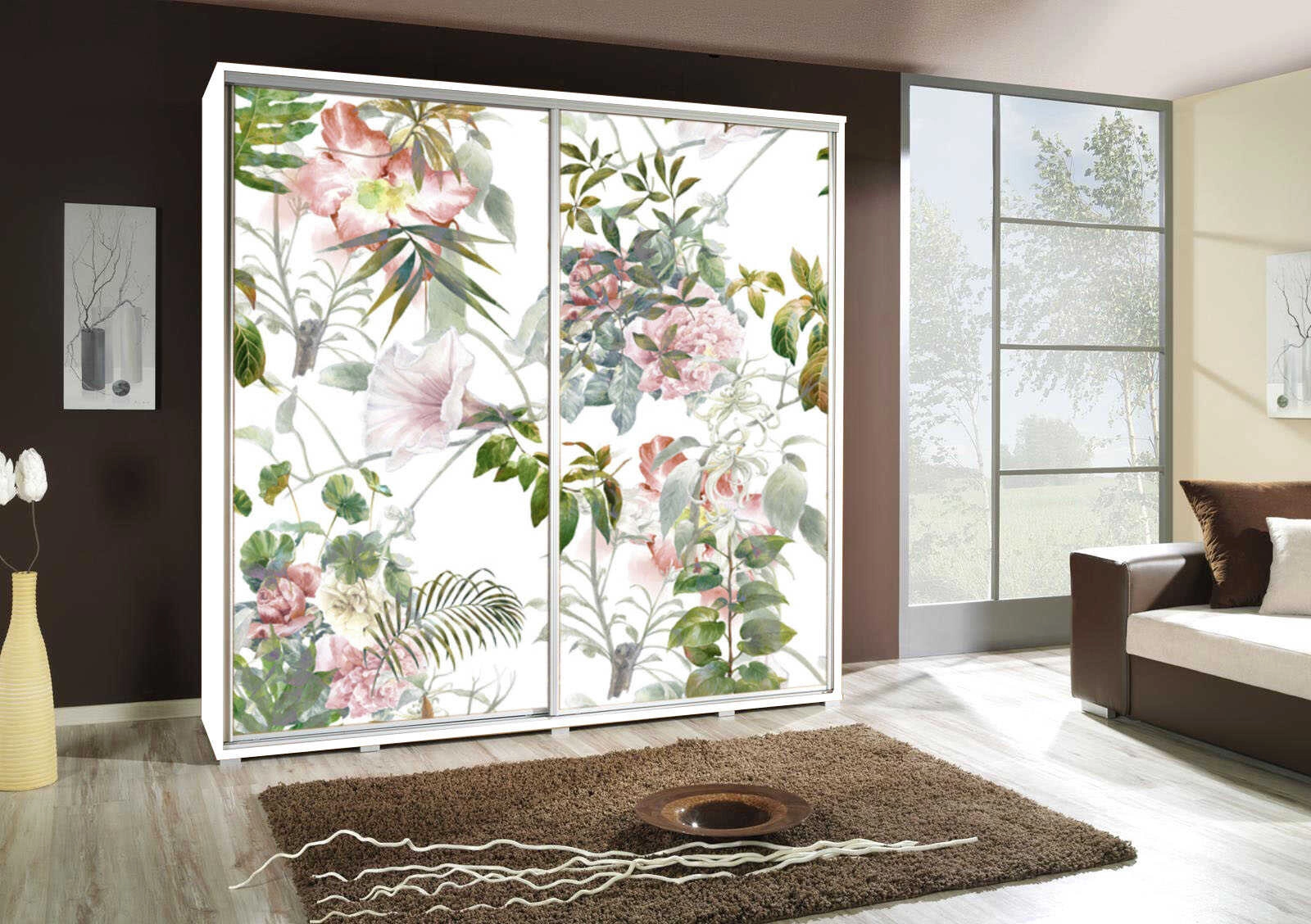 Szafa przesuwna Artistino z grafiką kwiatów w kolorze białym to przepis na nowoczesne oraz funkcjonalne wnętrze w pokoju dziecięcym.