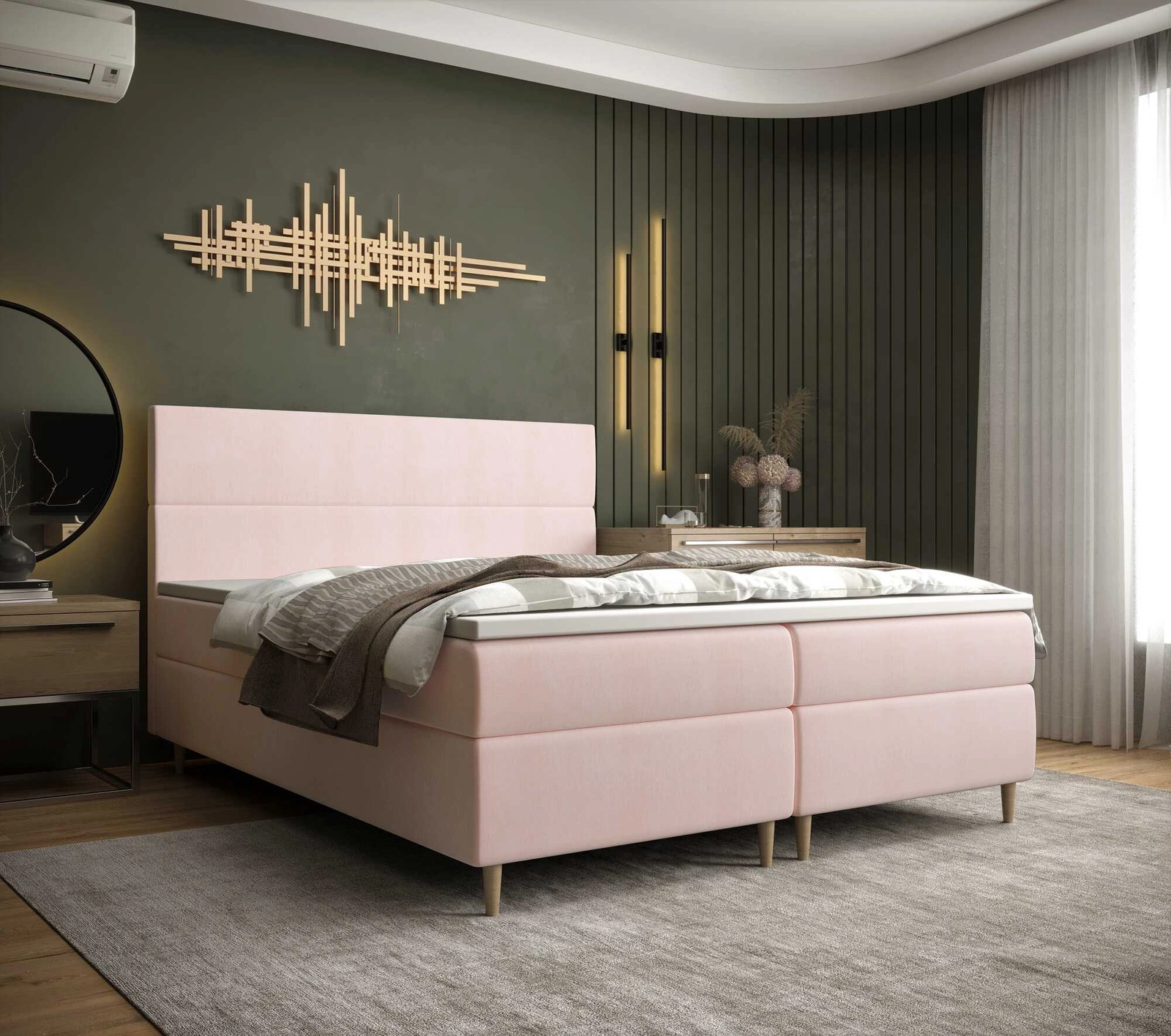 Łóżko kontynentalne Bing 140x200 w kolorze pudrowym różu to stylowy mebel, który idealnie wkomponuje się do każdej sypialni.