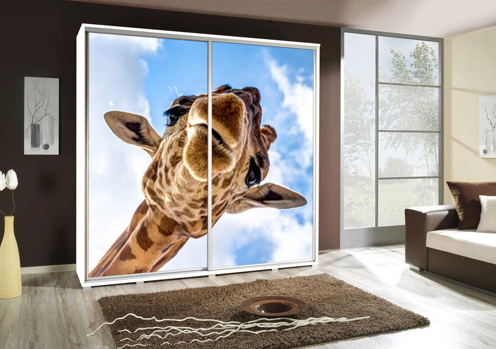 Szafa przesuwna Artistino 205 cm z grafiką żyrafa korpus szafy w kolorze białym wykonany z płyty o grubości 22mm