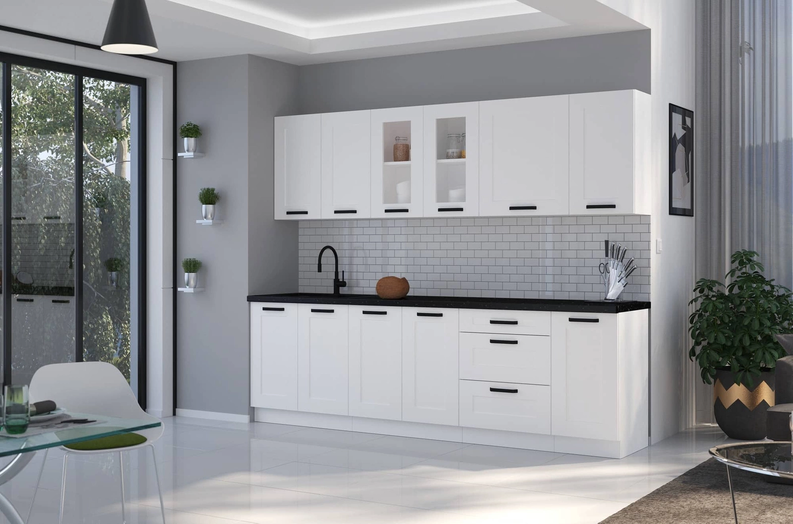 Zestaw mebli kuchennych Livio w kolorze białym to propozycja gotowego zestawu mebli do kuchni, który doskonale prezentuje się we wnętrzach klasycznych oraz nowoczesnych.