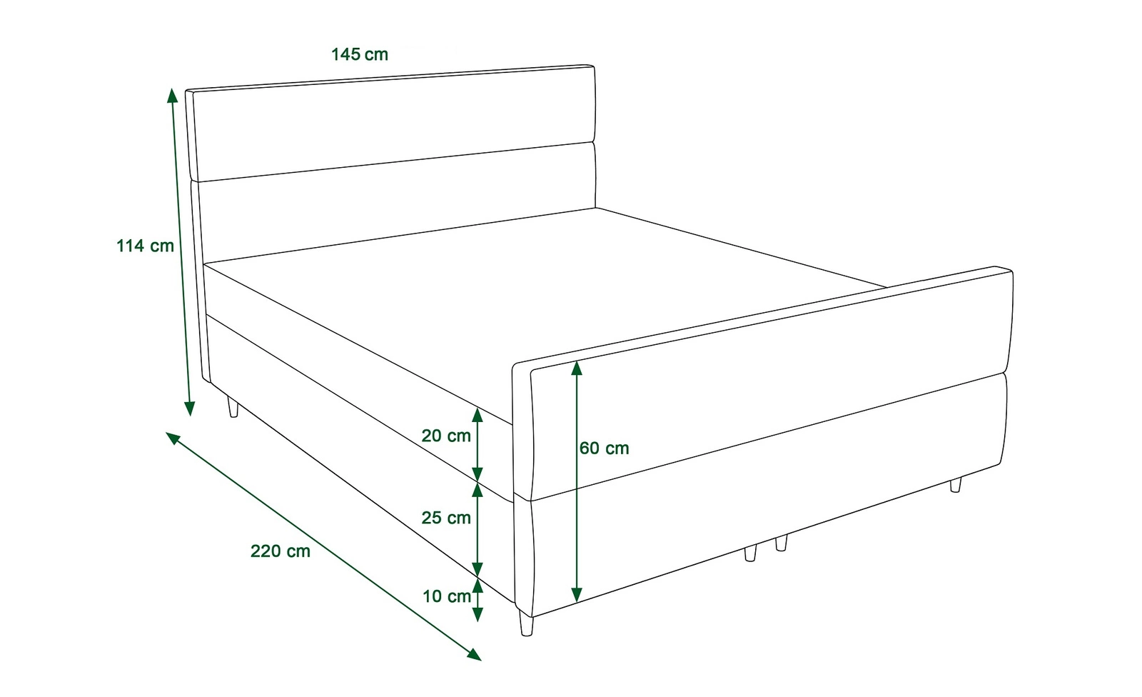 Można na nim siedzieć, np oglądając telewizję, pracując przy laptopie lub czytając książki. Standardowym wyposażeniem łóżka tapicerowanego Benet są dwa materace bonellowe. Materac bonellowy charakteryzuje się elastycznością powierzchniową sprawiającą, że materac jest odpowiedni dla osób w dużym przedziale wagowym.