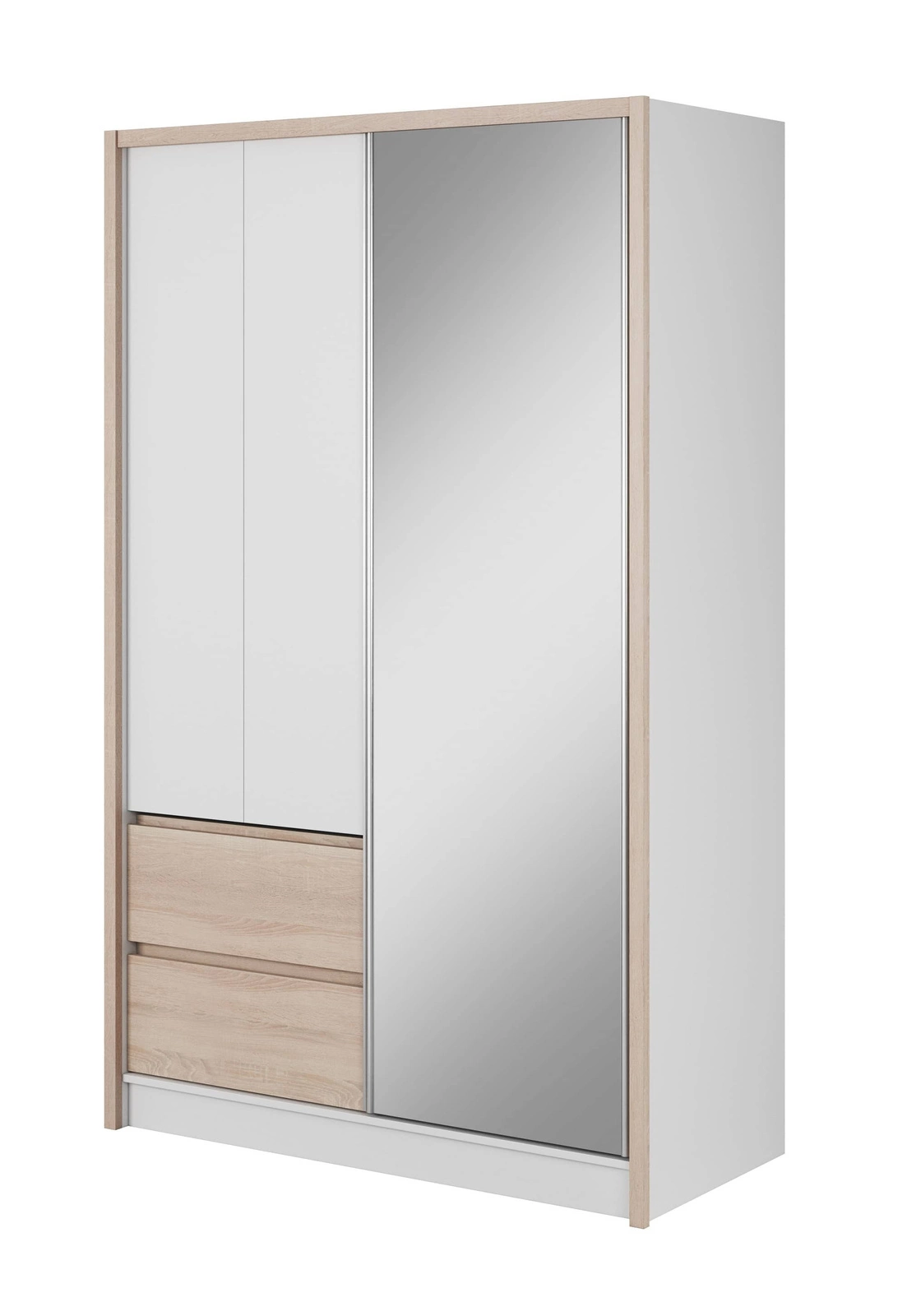 Szafa przesuwna z lustrem Cento w kolorze biały / dąb sonoma to przepis na nowoczesne oraz funkcjonalne wnętrze w Twoim domu!