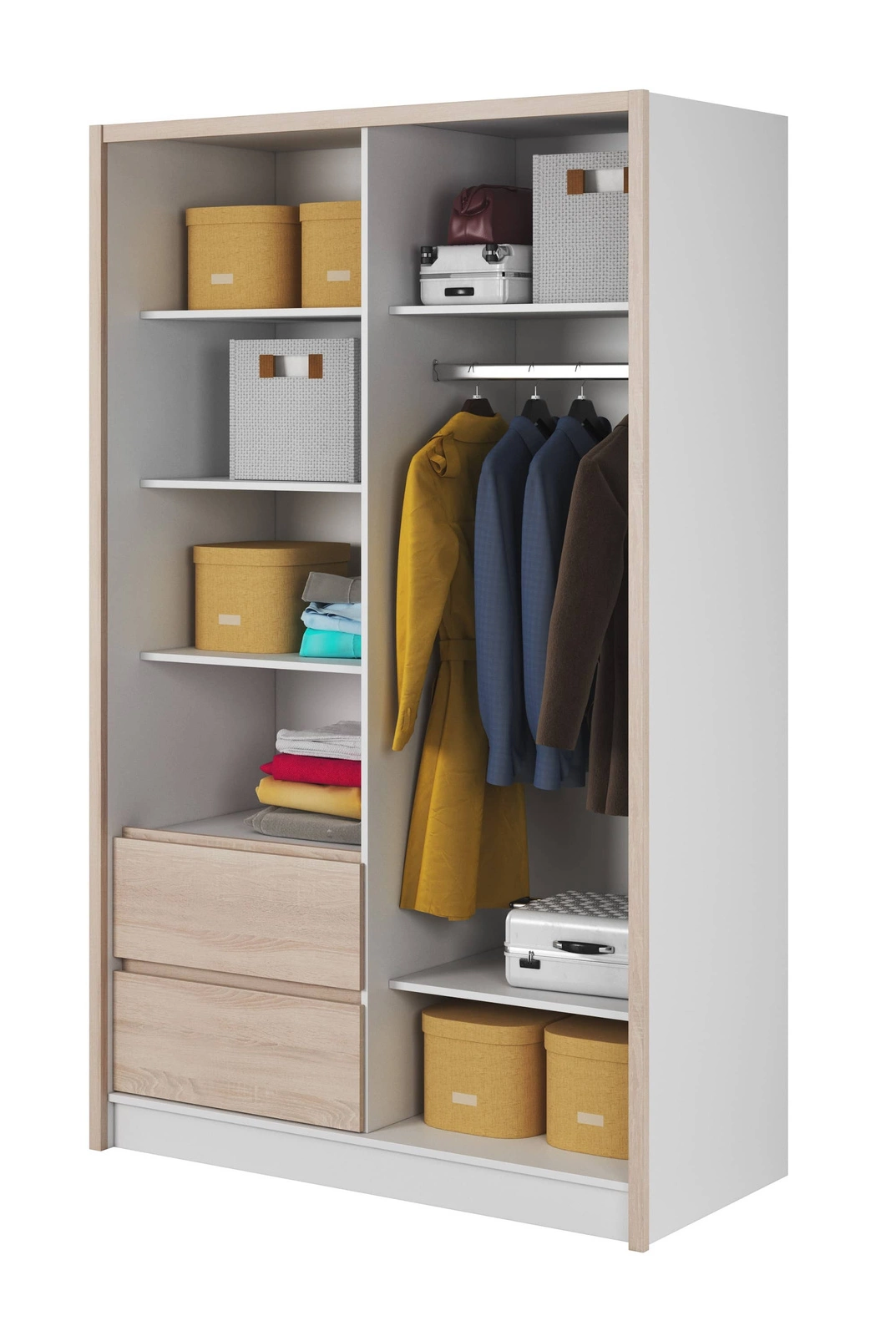 Szafa przesuwna Cento 134 cm biały / dąb sonoma nowoczesny design szafa idealna do garderoby sypialni lub przedpokoju