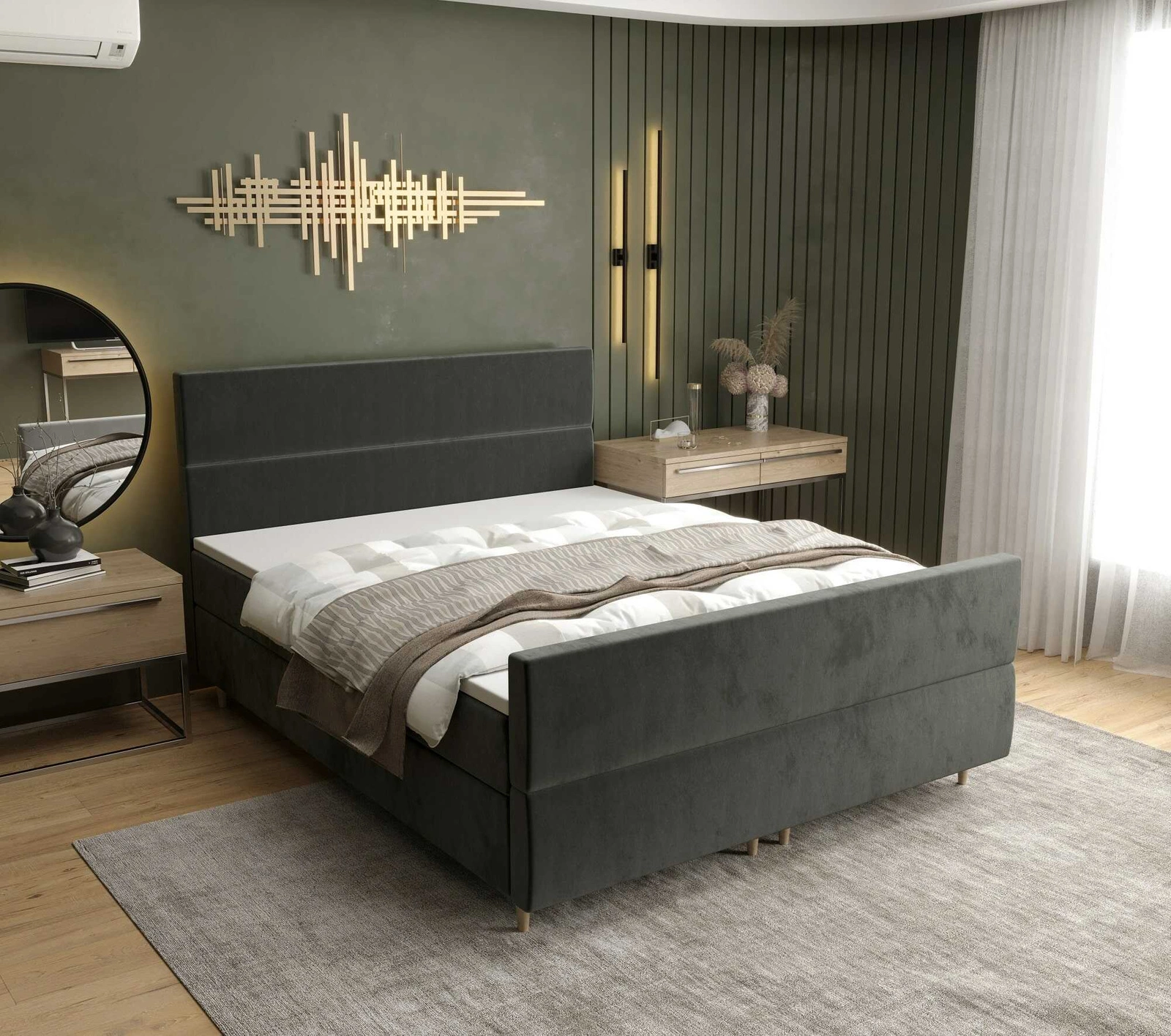 Łóżko kontynentalne Benet 160x200 w kolorze grafitowym to stylowy mebel, który idealnie wkomponuje się do każdej sypialni.