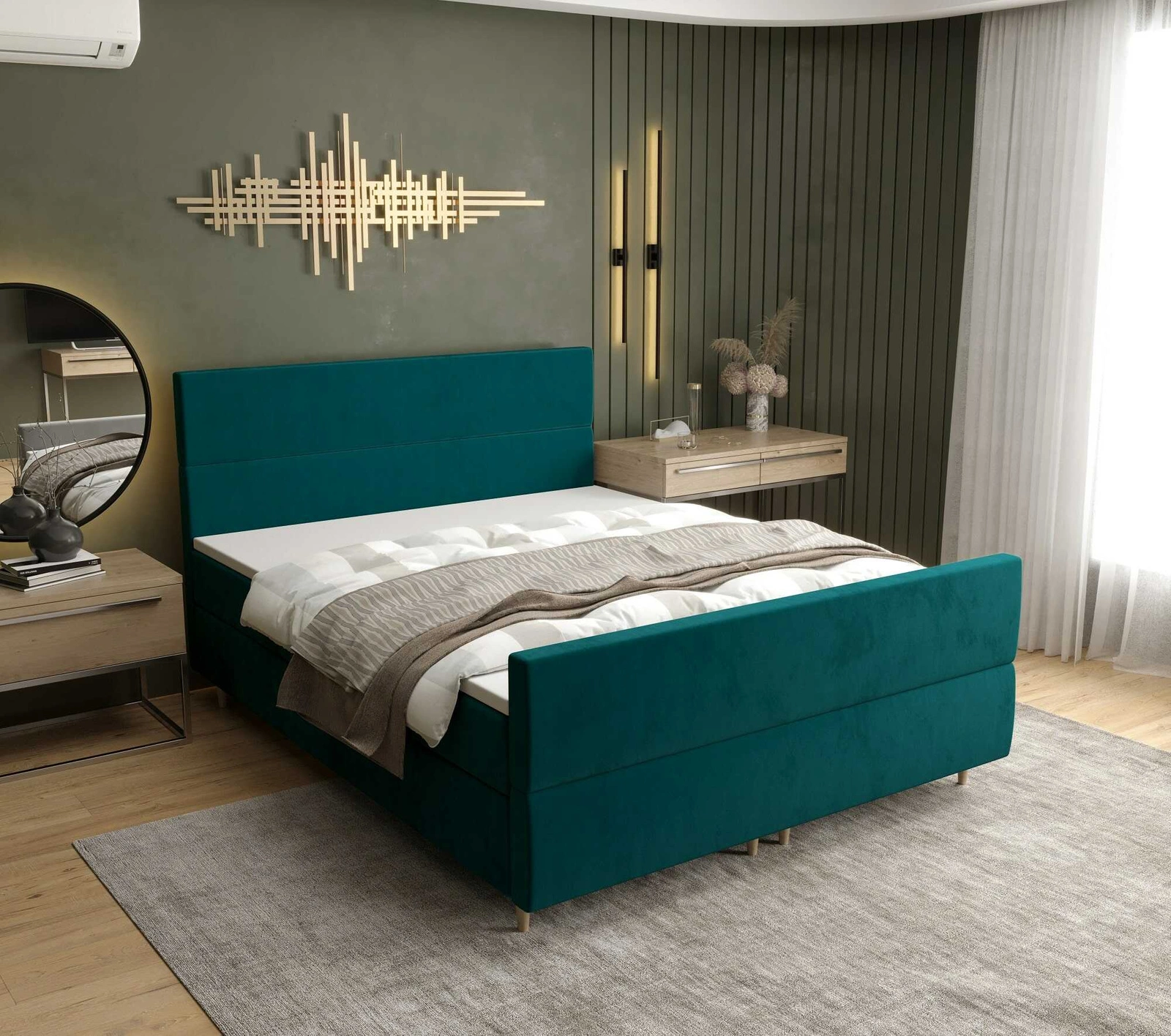 Łóżko kontynentalne Benet 140x200 w kolorze turkusowym to stylowy mebel, który idealnie wkomponuje się do każdej sypialni.