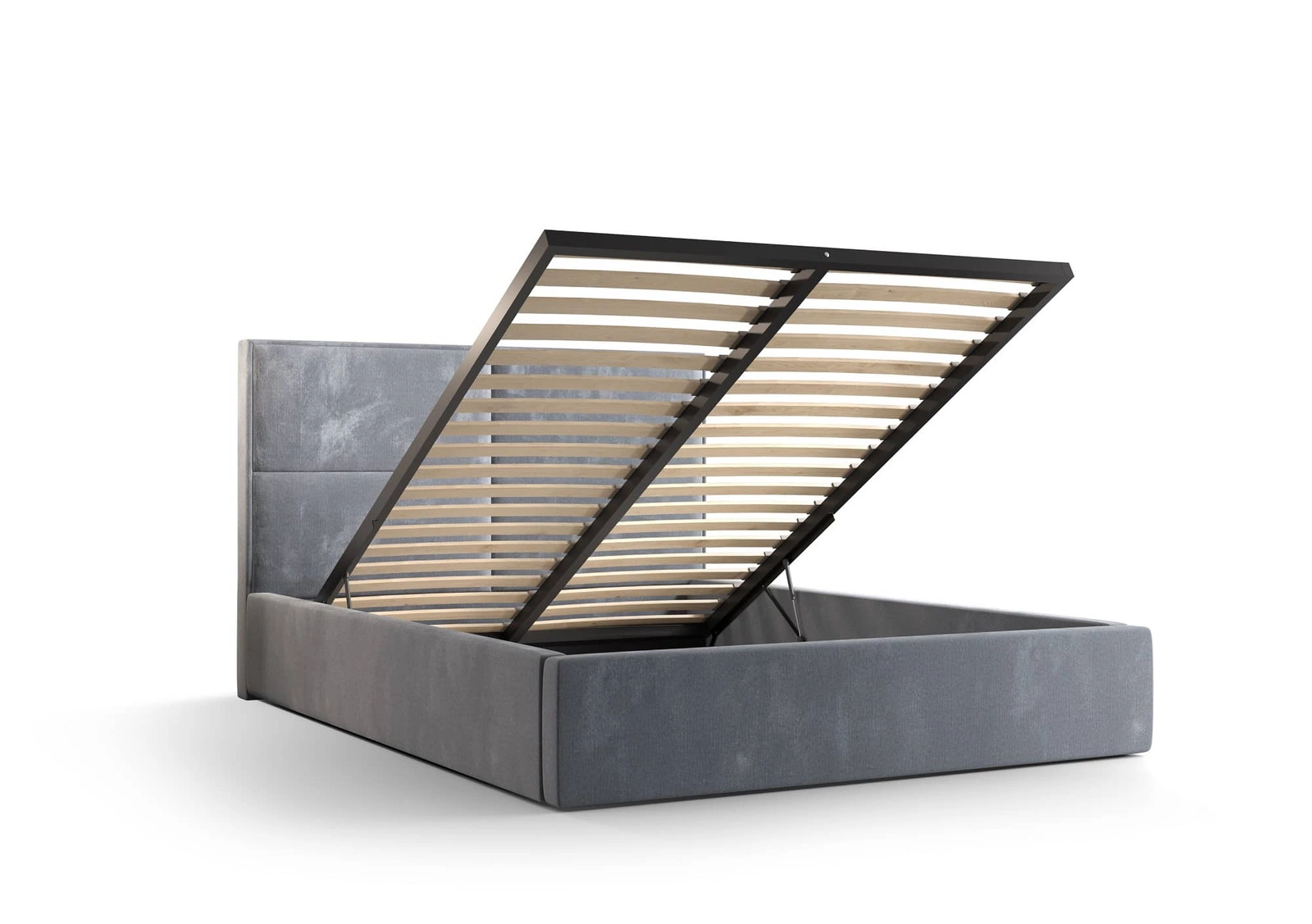 Standardowym wyposażeniem łóżka jest stabilny metalowy stelaż z listwami elastycznymi. Zagęszczenie bukowych listew gwarantuje odpowiednie podparcie materaca i jego właściwe użytkowanie. Zastosowane surowce oraz solidna budowa stelaża, umożliwiają uzyskanie pełnej satysfakcji ze snu na wybranym materacu. Stelaż pod materac został wyposażony w siłowniki gazowe, co ułatwia podnoszenie.