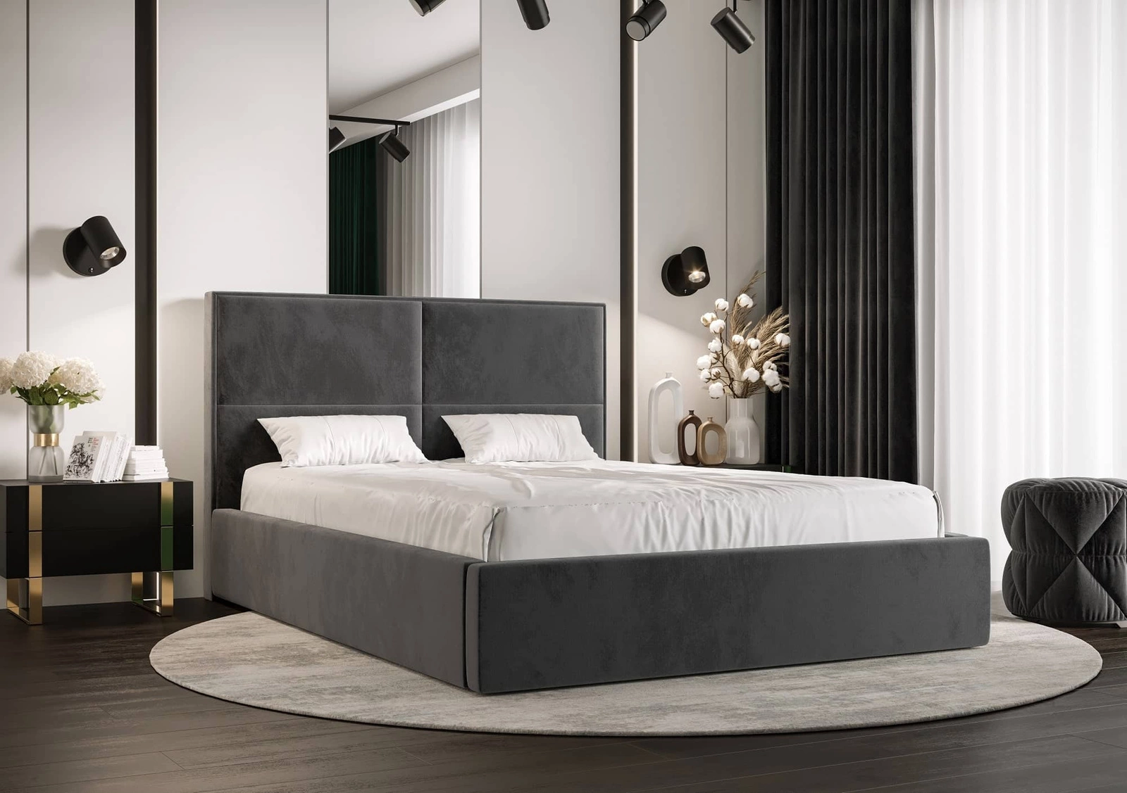 Łóżko wykonane z tkaniny typu velvet Monolith 92 gwarantuje najwyższy komfort i funkcjonalność podczas codziennego wypoczynku w sypialni. Tkanina posiada powłokę hydrofobową, co gwarantuje ograniczone wchłanianie cieczy. Ciekawa struktura tkaniny nadaje wyjątkowego charakteru. Dzięki wszystkim właściwościom użytej tkaniny, łóżko na długo zachowa swój pierwotny wygląd. Konstrukcja łóżka zapewnia dużą stabilność i wygodę użytkowania. Rama łóżka jest wykonana z drewna oraz płyty meblowej. Wygodny i praktyczny zagłówek jest wykończony czterema prostokątnymi panelami.