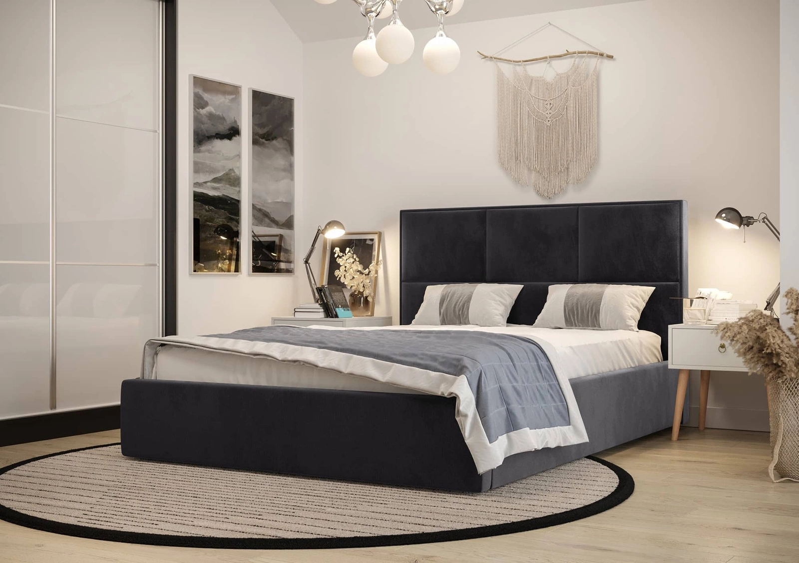 Łóżko tapicerowane Hestia 180x200 w kolorze grafitowym to idealne rozwiązanie do sypialni urządzonej w stylu nowoczesnym, skandynawskim oraz klasycznym.